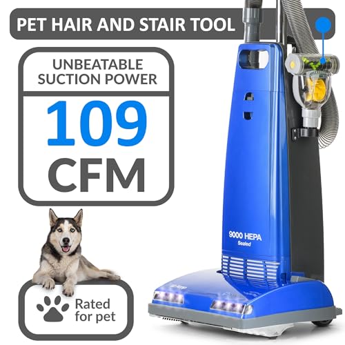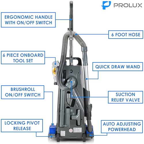 Prolux 9000 Upright Vacuum Cleaner – Powerful HEPA Filtration, Bagged Dust Chamber for Allergy Protection, Stainless Steel Brush Roll, Onboard Tools, and Brush Roll Control Pedal