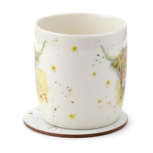 Puckator Jan Pashley Highland Coo Cow Porcelain Tea Coffee Mug & Coaster Set – Funny Home Accessories Cute Gifts for Girlfriend Large Mugs for Men Women Hot Drinks Cups Presents Secret Santa Gift