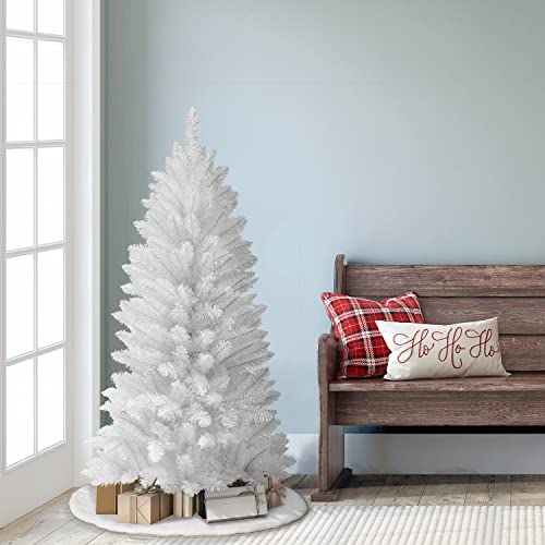 Embrace the joy of the holiday season into your house with the Puleo International Carson Artificial Pine Tree. This 4-foot tall artificial holiday tree with white pine needles and an elegant shape perfectly captures the ambiance of the wintry forests in your house. This artificial tree has a full appearance with a total of 188 PVC branch tips and gorgeous life-like branches that stimulate a realistic feel of nature’s beauty. Assembly is simple and quick, and a white plastic stand is included for convenient placement anywhere in your house. The flame-retardant, hypoallergenic, and needle-shed resistant tree offers a safer alternative to fresh-cut Christmas trees, so you’ll be able to welcome in family and friends for holiday celebrations without worry. This product is backed by a five-year warranty.