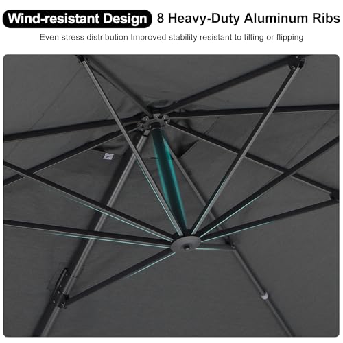 Enhanced Wind Resistance: The aluminum ribs are coated with anti-oxidation paint, providing ample fortify with eight sturdy ribs, coupled with a triangular engineering design, significantly enhancing the deck umbrella’s wind resistance and weather durability.