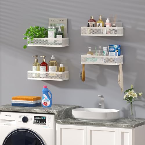 • Pusdon hanging storage baskets organizer wall mount metal wire storage bin rack for kitchen bathroom shower spice shelf home decor essentials white 2 packs netting  urban country home decor
