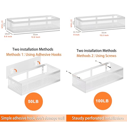 PUSDON Hanging Storage Baskets Organizer Wall Mount, Metal Wire Storage Bin Rack for Kitchen Bathroom Shower Spice Shelf Home Decor Essentials White-2 Packs (Netting)