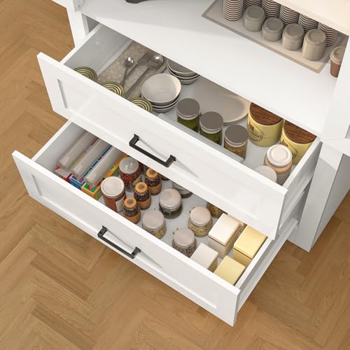 【Maximize Your Space】Upgrade your house organization with our stunning pantry cabinet. It boasts a generous size, with 2 spacious drawers. The customizable middle shelf offers 3 height options, providing versatile organization to suit your unique storage needs.