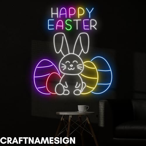 Craftnamesign Rabbit Easter Colorful Neon Sign, Happy Easter Bunny Day Led Sign, Custom Neon Sign, Easter Day Home Wall Decor, Happy Easter Day Gifts