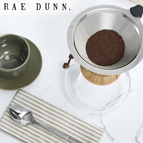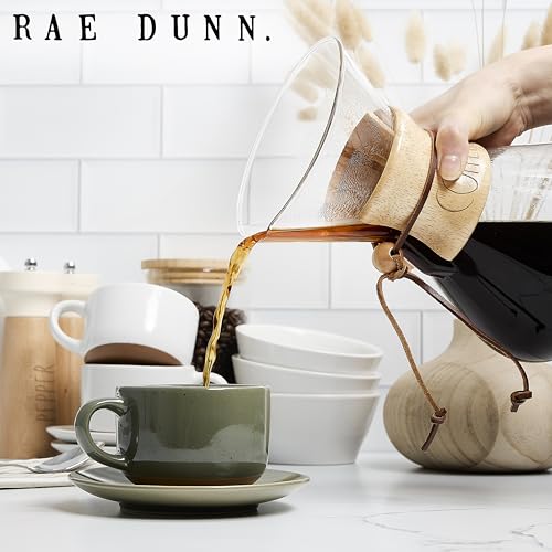 Introducing the Rae Dunn Glass Pour Over Coffee Maker, where simplicity meets sophistication in your day by day coffee ritual. Crafted with quality in mind, this pour over coffee maker combines a sleek design with functionality, ensuring a delightful brewing experience each time. Designed with a generous capacity of 1000ml, our pour over coffee maker lets you brew up to 8 cups of rich, flavorful coffee, great for sharing with friends or savoring during the day. The heat-resistant borosilicate glass carafe not only enhances the brewing process by maintaining optimal temperature stability but also ensures durability for long-lasting use. Adding to its charm is the elegant bamboo collar and deal with, which not only provides a safe grip but also adds a touch of natural beauty to your kitchen or coffee station. The collar is removable for simple cleaning, ensuring convenience and hygiene in maintaining your coffee maker. Achieve coffeehouse-quality brews effortlessly with the Rae Dunn Glass Pour Over Coffee Maker. Its specially designed stainless steel mesh filter ensures even extraction of coffee grounds, allowing the natural oils and flavors to permeate through, resulting in a smooth and aromatic cup of coffee with each pour. Whether you are a coffee aficionado or simply enjoy a comforting cup to start your day, our pour over coffee maker offers a simple yet effective way to elevate your coffee experience at home. Easy to use and easy to clean, it is the great addition to any coffee lover’s collection. Experience the art of pour over brewing with the Rae Dunn Glass Pour Over Coffee Maker and discover a new level of flavor and satisfaction in each cup. Upgrade your coffee routine with style and precision—because great coffee begins with a great pour over coffee maker.