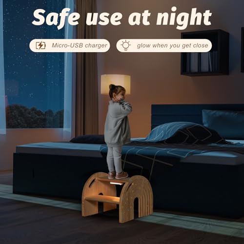 Glow when you get close: The induction light has a magnetic base that may be easily fixed to the bottom of a wooden step stool, and can also be taken off at any time for simple charging with USB (included), so you should not have to worry about running out of batteries