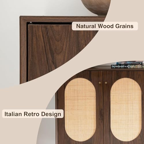 Quality Material: Our rattan cabinet with doors is made of wood core and premium MDF which promises a long service life. Natural rattan in oval design in doors make this dining room accent cabinet exquisite. Four solid wood legs with adjustable floor padded offer protection to the floor very well and you’ll be able to clean the floor easily