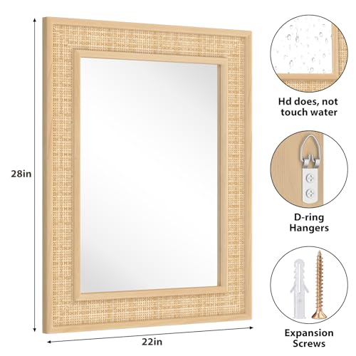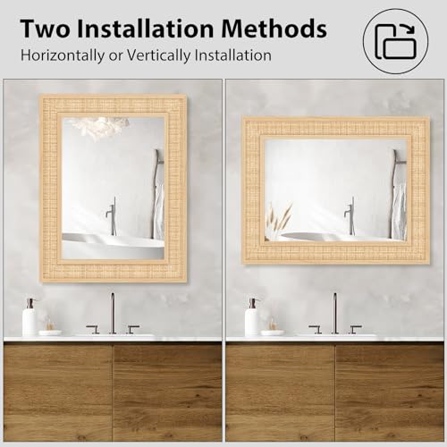 FUWU HOME Rattan Wall Replicate with Wood Framed 22 X 28 inch Farmhouse Rectangle Wooden Replicate for Wall Decor Rest room, Residing Room, Entryway, Bedroom