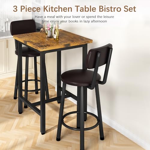 Sturdy and Durable Construction: Crafted from premium MDF and a corrosion-resistant, sturdy metal frame, this 3-piece pub dining set boasts exceptional durability and stability, with a weight capacity of as much as 250 lbs for the bar stools.