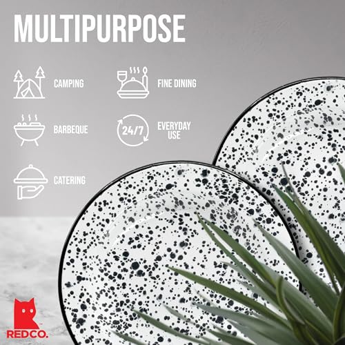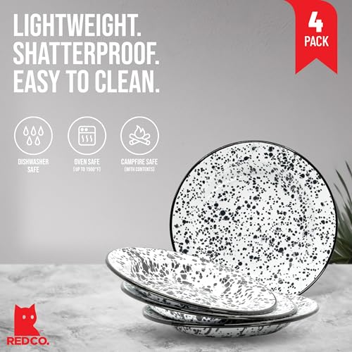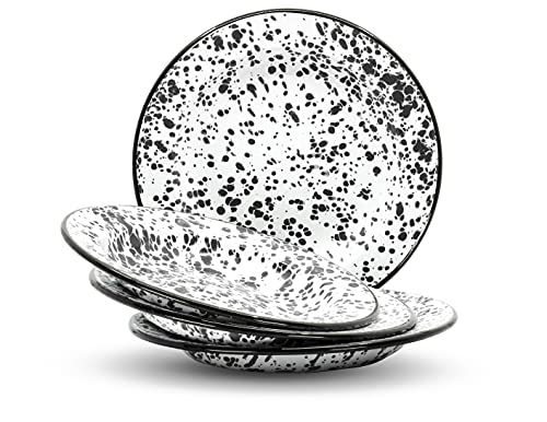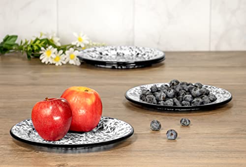 Red Co. Set of 4 Enamelware Metal Classic 8″ Round Salad Plate, Black Marble/Black Rim – Splatter Design