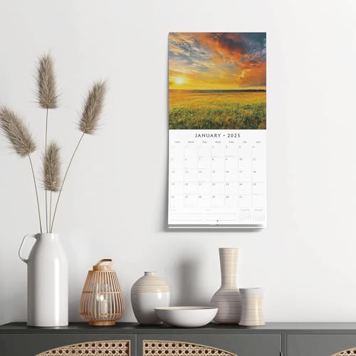 Escape to the peaceful charm of rural life with the 2025 ‘Country Scenes’ wall calendar. Measuring 12″ x 24″ open, this calendar is printed on premium thick & sturdy paper, ensuring that the colors and details of idyllic countryside landscapes remain vibrant throughout the year. Each month features picturesque scenes of rolling hills, rustic barns, winding country roads, and tranquil farmlands, offering a serene visual retreat from the hustle and bustle of daily life. Whether you live in the countryside or simply long for the simplicity of rural living, this calendar brings the peace of the country into your home.