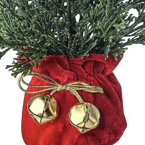 Cedar Christmas Tree in Velvet Sack with Bells,