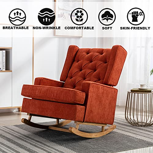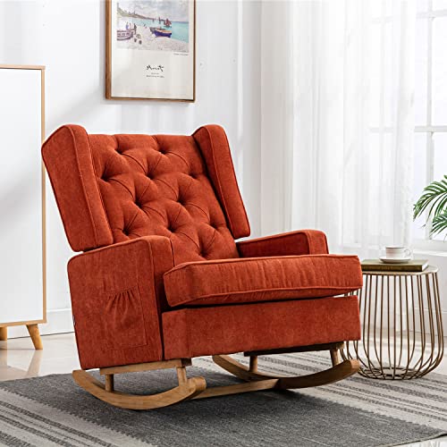 High Back & Cozy Armrest: This comfortable overstuffed armchair will give you strong fortify for all your body.This rocking chair has a wide, high backrest and ergonomically designed armrests, providing you with great comfort and helping you loosen up after a tiring work when you lean on it or rock it.