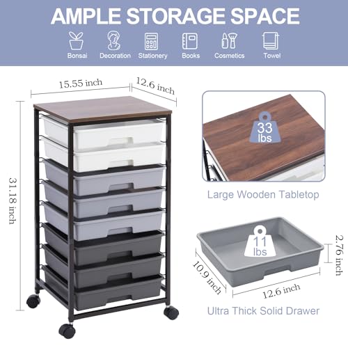 8 DRAWER STORAGE CAPACITY: Utility cart with 8 drawers provide ample space so that you can store stuff by different categories.The overall size of this cart is 15.55″D x 12.60″W x 31.18″H.There are different color drawers for to store and classifying your stuff to keep them tidy and clean.Slide-out drawer design,with smooth slide track and ergonomic handles,easy to open or close.
