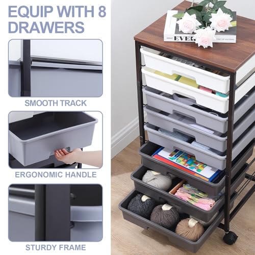FIT YOUR DIFFERENT STORAGE NEEDS: Whether you’re a housewife,an workplace worker,a student or a craftsman,this rolling storage cart with 8 drawers will be very helpful to you.More drawers great to storage tools,sewing supplies, embellishments, punches, stamps,paper,scrapbooking,school supplies,toys,stationery,workplace supplies,art and craft materials and beauty products.Perfect for living room,bedroom,workplace,sewing room,craft room,classrooms,dorm,art studio or homework station.