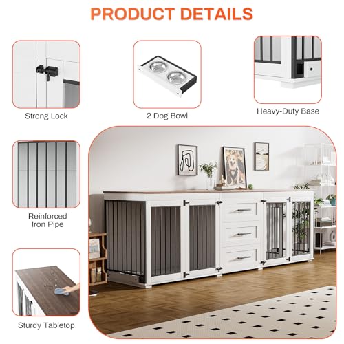 【Dog Cage with 3 Storage Drawers】: The upper a part of the decorative wood dog crate has 3 large drawers, you’ll be able to store dog food, snacks, leashes, and the like. And this kennel also has the wide desktop that you’ll be able to display decorations such as plants, magazines, picture frames, night light and so forth