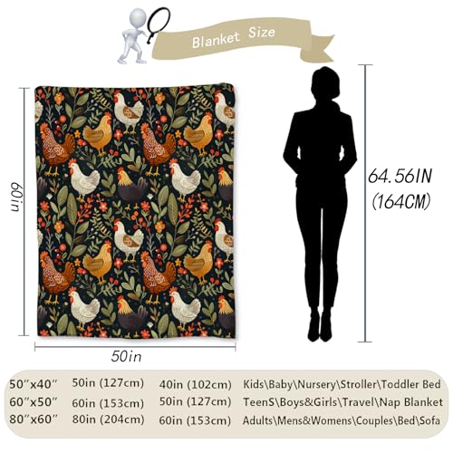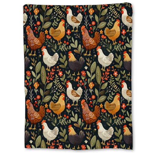 Rustic Chicken and Floral Blanket, Soft Lightweight Flannel Throw Blanket for Couch, Bed, Travel, Living Room & Home Decor, Cozy Warm Fuzzy Blankets for Adults Kids Women Girls 60×50 in