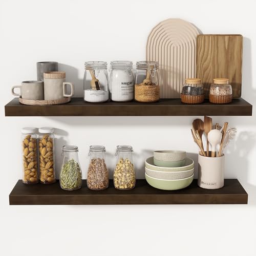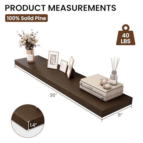 【Solid Pine Shelf】Unlike other products, Heimlove floating shelves are handcrafted from the finest natural pine, measuring 36″W x 8″D x 1.4″. And coated with non-toxic and harmless varnish, making the shelves more acid-resistant, heat-resistant and easy to clean.
