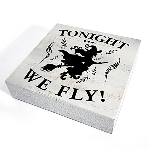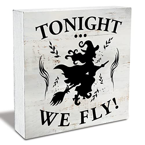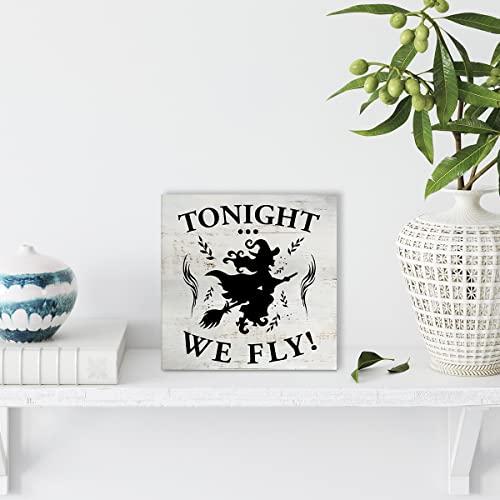 Rustic Tonight We Fly Wood Box Sign Country Halloween Wooden Box Sign Farmhouse Home Desk Shelf Decor (5 X 5 Inch)