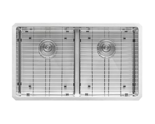 UNIQUE LOW-DIVIDE: Center divider sits 4″ below the highest of the rim giving additional clearance when washing large pots and pans. | LARGE DOUBLE BOWL SINK: 30-inch wide and 19-inch front-to-back provides you with a number of usable space. | 16 GAUGE STAINLESS STEEL: Premium T-304 Grade (18/10 Chromium/Nickel) will never rust or stain.