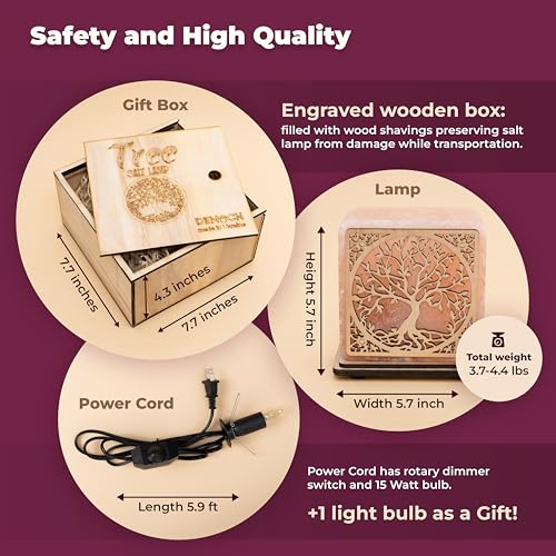 [Natural Rock Salt] Awesome Tree Salt Lamp is made of pure natural rock salt that may be the source of fresh clean air. Power Cord, wooden gift box are included, +1 light bulb as a gift