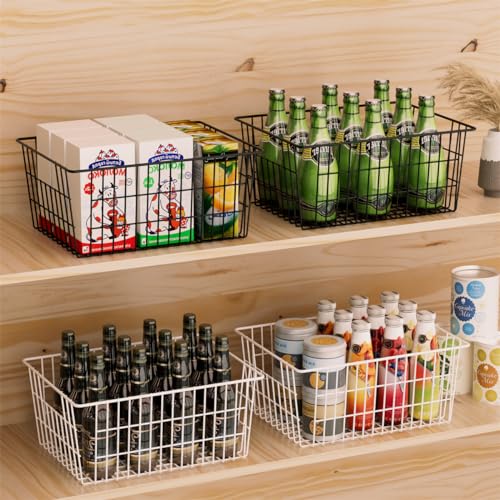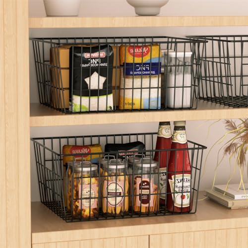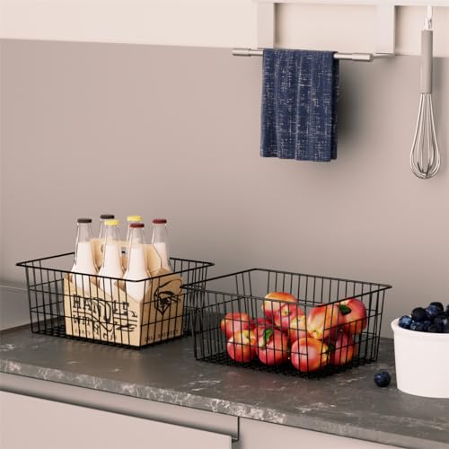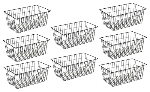 Every bin is:14″W x 6″H x 11″D ,Versatile Organization: SANNO Large Metal Wire Freezer Baskets are the easiest solution for your kitchen cabinets, pantry, bathroom, laundry room, closets, and garage. With sturdy metal wire construction and convenient handles, easily organize and store quite a lot of food items, cleaning supplies, and miscellaneous items.