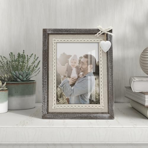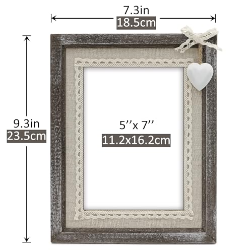 RUSTIC PICTURE FRAMES: The country wood creat a warm, loving feel to the frame with Lace trim and white heart decoration in the upper right corner, ideal for collecting and treasuring your beloved or precious memory.