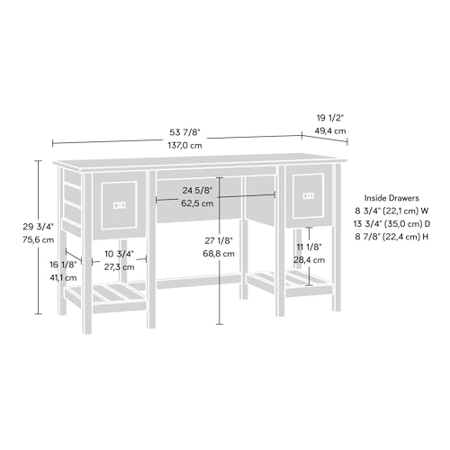 Transform your place of business space to a up to date oasis with this desk from the Cottage Road® collection. The spacious table-top surface of this double pedestal desk offers ample amount of room for your entire should-have place of business items – laptop, number of notepads, a cup full of pens, and naturally, your favorite coffee mug. This farmhouse pedestal desk features two spacious storage drawers that open and close on full extension slides for convenient storage of your place of business essentials. Keep your entire important documents and papers organized in the file drawer that incorporates letter-size hanging files. This beautiful home place of business desk with drawers also includes two lower open shelves for additional storage of organizing bins or books. We have made assembly as easy as imaginable: This home place of business desk with storage features a T-slot assembly system and slide-on moldings because we know your time is valuable. This up to date farmhouse desk is finished on all sides for versatile display and features a Soft White® finish with a Lintel Oak® accent. This home place of business desk with storage will have you feeling motivated and able to work!