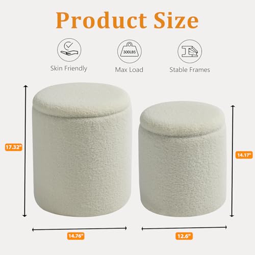 【Huge Hidden Storage Space】 These round ottoman stools provide extra huge storage space for neatly organizing toys, clothes, pillows or magazines. Not only helps to keep your privacy but additionally makes your own home looks more clean and well organized.