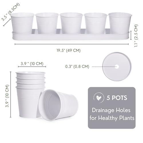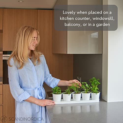 • SCANDINORDICA White Herb Planter–5 Pots with Drainage Holes and Tray Windowsill Planter Indoor Planter Outdoor Herb Pots for Indoor Plants