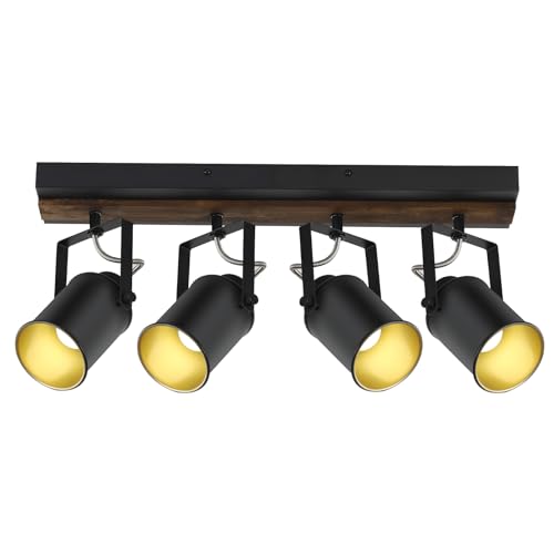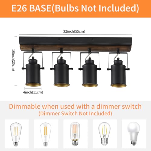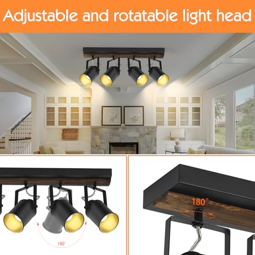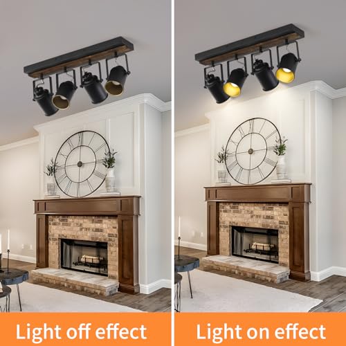 Farmhouse Décor: The 4-light track light features dark wood slices paired with black metal that may bring a wealthy industrial farmhouse look to any space.and the black at the out of doors and gold at the inside shades make the light more cozy.