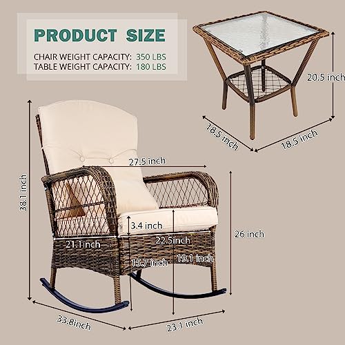SENSWEET 3-Piece Out of doors Wicker Rocking Chairs Set
