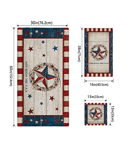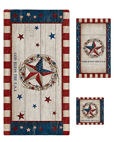 SEVENBABU 3 PCS Towel Set – Contains Absorbent Bath Towels 30×60, Hand Towels 16×28 and Wash Cloths 13×13, Patriotic Stars and Primitive Berries on Retro Wooden Plank Soft Towel Sets for Bathroom