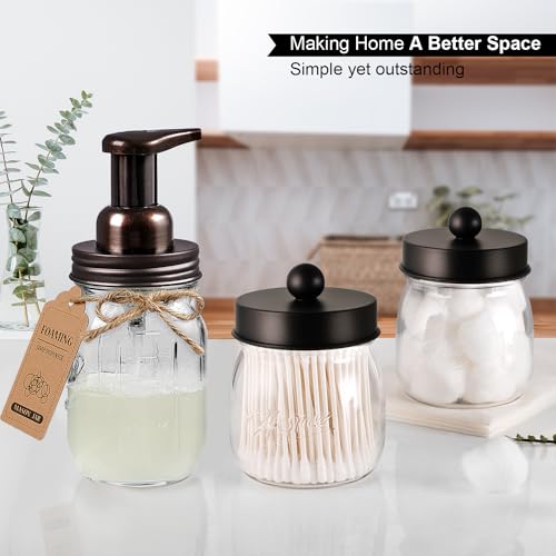 ✅【Bathroom Accessories】Great depth, texture and a beautiful space by the usage of the mason jar soap dispenser and qtip holder jars. It’s a cute shabby chic home accessories set you’ll get!Ideal brand new farmhouse decor! Excellent match for rustic charm.