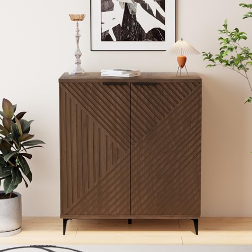 【Unique Appearance Design】This storage cabinet features grooved doors with a uniquely designed pattern that complements quite a lot of home decor styles. It is an eye-catching addition to any corner of your home. The cabinet door handles are made of metal with a widened design, making it easier and more effortless to open the doors.