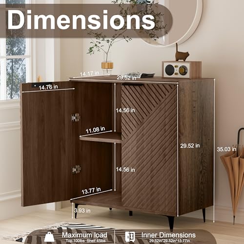 【Large Storage Capacity】 This storage cabinet measures 29.5″ L x 14.2″ W x 35″ H, making it larger than typical cabinets and providing more storage space. Inside the cabinet, there is an adjustable shelf, allowing you to customize the height to fit your storage needs and maximize space utilization.