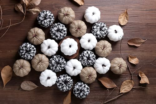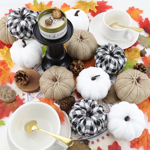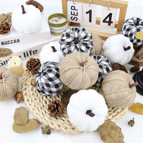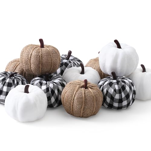 • SITUMEIZI 12 Pcs Pumpkins Fake Harvest Velvet Pumpkin White Black Small Faux Fabric Foam Pumpkin for Fall Decor Wedding Thanksgiving Halloween Home Farmhouse DecorationBurlap