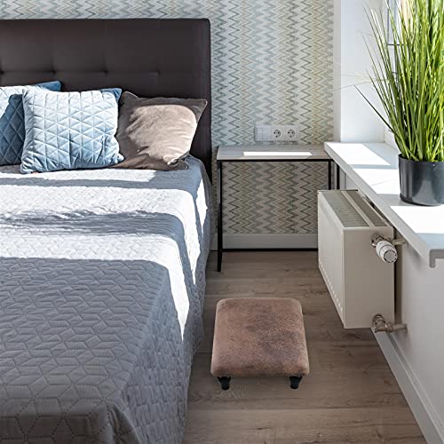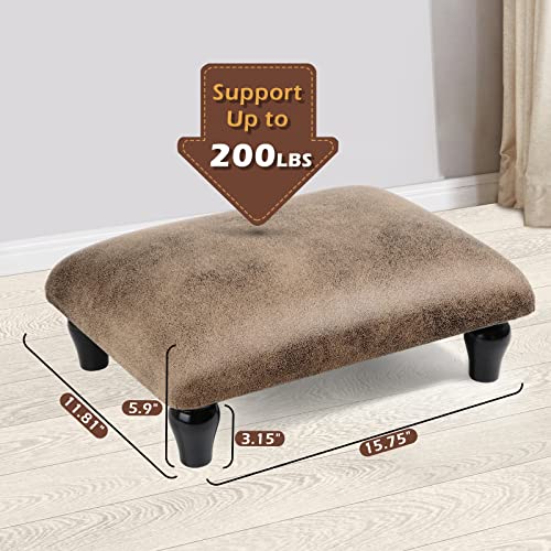 Small Foot Stool Ottoman with Stable Wood Legs Upholstered Footstool Padded Foot Rest Step Stool for High Beds Seat Chair Couch Sofa Patio Bedroom Living Room Office (5.9″ H-Shallow Brown)