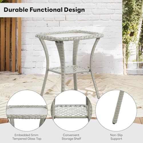 Excellent Combination Decoration:This glass side table is undoubtedly the very best addition to a patio lounge, poolside, porch, yard, deck or living room, and it may be matched with other furniture in your house, such as chairs and sofas, for both beauty and practicality.