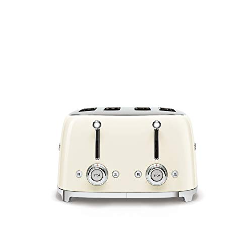 • Smeg 50s Retro 4 Slot Toaster TSF03CRUS Bundle with Bamboo Tongs Cream