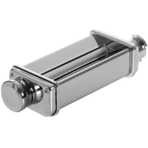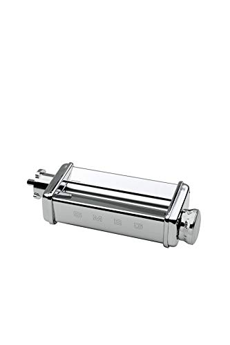 The Smeg pasta roller is made out of chromed steel and is an adjunct to be used with the Smeg stand mixers. While used with contemporary homeade pasta dough the roller could make 10 other lengths of pasta sheets 140mm wide.