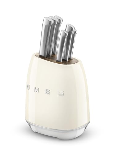 EASY TO CLEAN: powder-coated carbon steel exterior in glossy Cream to coordinate with other SMEG countertop appliances, and the anti-slip feet keep the block from sliding around while you get rid of a knife. Hand wash simplest