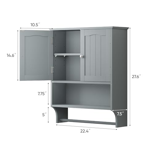 • Smuxee Grey Bathroom Cabinet Wall Mounted with Towels Bar Bathroom Medicine Cabinet with 2 Door Adjustable Shelves Over Toilet Cabinet for Bathroom Laundry Room Kitchen