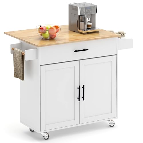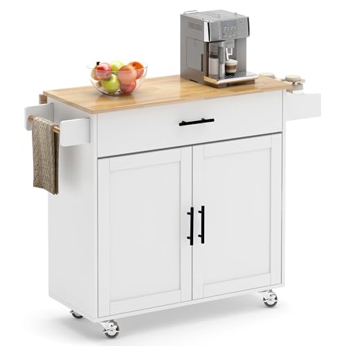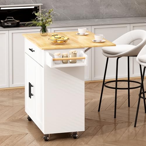 Rolling Kitchen Island on Wheels, Serving Cart with Drop Leaf Design and Lockable Casters for Easy Mobility and Stability, Ideal for Kitchen Cart Coffee Bar Microwave Cart