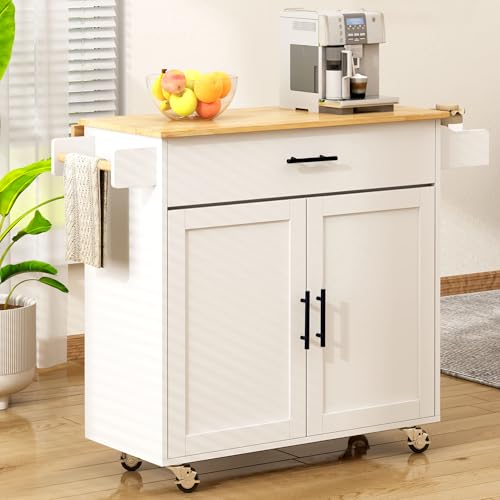 Easy Mobility: Designed with four smooth-rolling wheels, this rolling kitchen island will also be effortlessly moved around your space. Two lockable casters be certain that stability when you want it, making it perfect for both mobility and security.