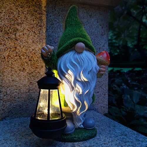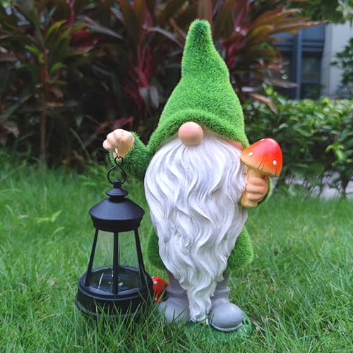 【Adorable Garden Decor】This cute and funny gnome holding a mushroom and solar light lantern,beautifully crafted gnome with synthetic grass fur is the best way that nature intended our statue to seem – soft and cuddly.