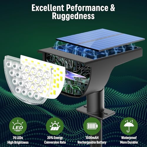 Solar Lights Outdoor Waterproof IP65, 76 LED 3 Lighting Modes Solar Spot Lights Yard Garden Landscape Pathway Solar Lights for Outside (Cool White, 4 Pack)