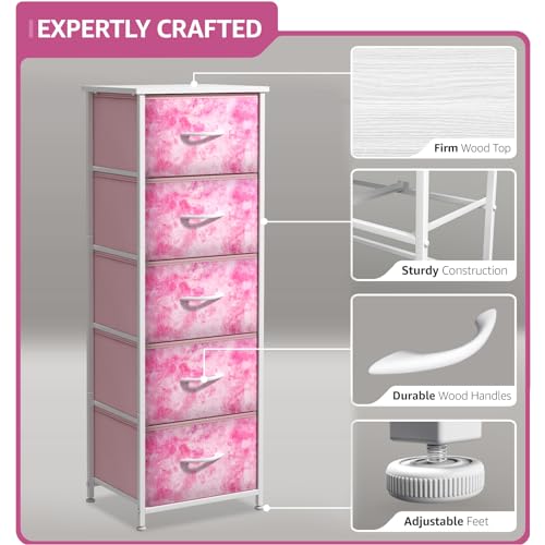 5-DRAWER NIGHTSTAND (PINK) — Style meets serve as with our lightweight accent table, complete with a wood surface and storage drawers — Pairs beautifully with the Sorbus Foldable Furniture Collection