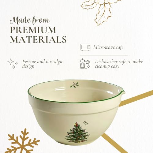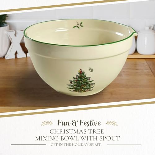 Spode Christmas Tree Mixing Bowl with Spout: A holiday crucial with a nostalgic design that brings warmth on your Christmas traditions. This mixing bowl, adorned with the iconic Christmas Tree pattern, adds a festive touch on your kitchen all over the holiday season.