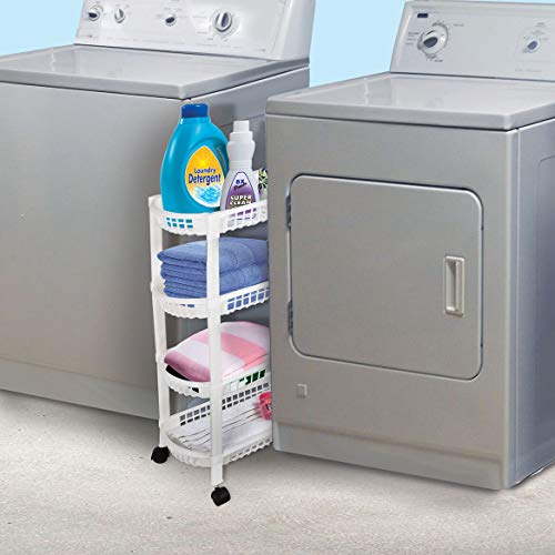 This 4-Tier Rolling Cart easily rolls from room to room! Handy rolling cart with sturdy open mesh baskets hold groceries, laundry, towels & linens, bathroom and kitchen supplies. Four easy-rolling swivel casters permits you to roll it anywhere with fingertip ease. 18 3/8″ long x 10 5/8″ wide x 28 7/8″ high. Polypropylene. Wipe clean.
